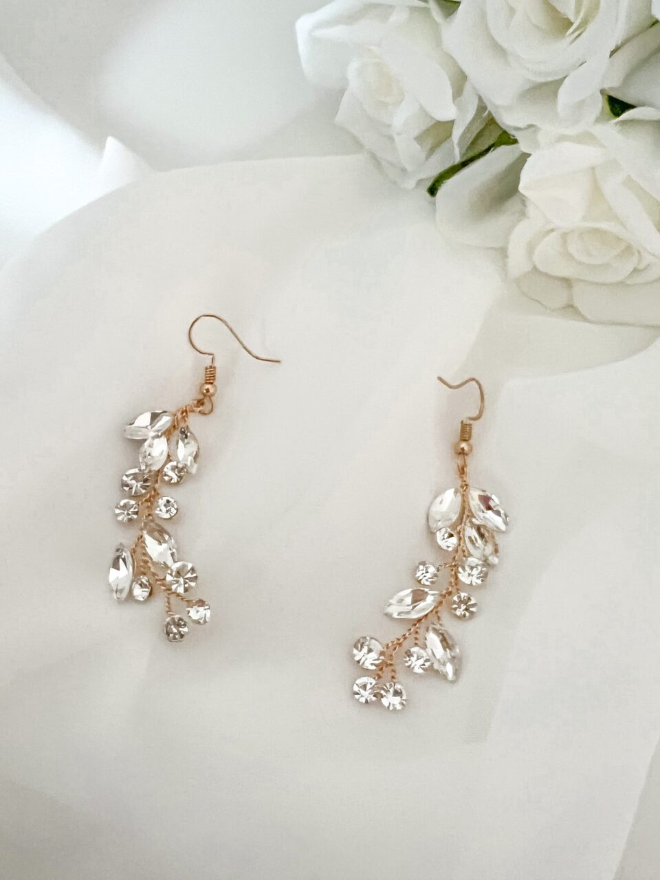 Klasyczne kolczyki na druciku jubilerskim w kolorze złota, ozdobione cyrkoniami w różnych kształtach. Wpasowują się w styl klasyczny, romantyczny, glamour, boho glam oraz vintage. Dostępna również opaska i bransoletka Gentle Gold do kompletu.