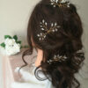 Stwórz swój ślubny wizerunek według własnej wizji. Nic tak nie sprawdzi się w kreowaniu indywidualnego stylu niż ozdobne wsuwki do włosów. Pięknie błyszczące kryształy i drucik jubilerski w kolorze złotym to idealna propozycja dla stylu glamour, boho glam lub klasycznego. Wepnij jedną wsuwkę lub kilka, w klasyczne upięcie lub luźne loki. Marzysz o welonie? Nie ma przeszkód, by połączyć obie te ozdoby.